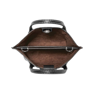 The perfect little companion for a night out or running errands, its flap is decorated with a cool double row of studs and 1/2 moon hardware. It has a back pocket and a removable crossbody strap with the option to wear as a clutch or toss into a tote bag.
