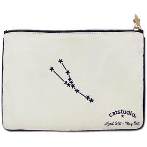 Our original design is uniquely woven (not printed!) with enchanting silver and gold threads into a handy-sized zip pouch - perfect for toting your keys, cash & credit cards, cosmetics - all your small necessities! Complete with chic gold zipper and star pull, and our signature constellation navy blue lining. Conveniently sized at 5.5x8 inches.