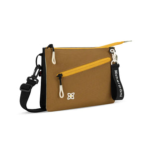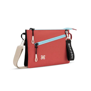 This crossbody bag offers a new twist on a classic style. The Zoom has an internal divider that separates the main compartment in two, providing ultimate organization and easy access to your belongings. Made from recycled material, the Zoom features an external zipper pocket, internal zipper pockets, and an adjustable crossbody strap. This Zoom will do anything but slow you down!