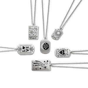 This tag style pendant is “emblematic” of a sentiment – which makes it meaningful jewelry meant to be treasured. The moon and stars and inscription “to the moon and back” are a sweet sentiment for someone you love.