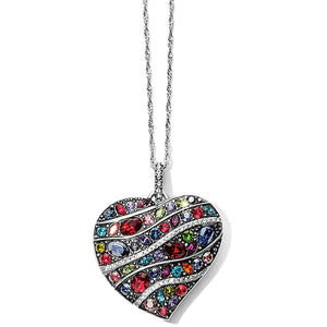 Between undulating lines of pave-set clear fine quality crystal, colorful crystals in myriad shapes and sizes create a brilliant mosaic.