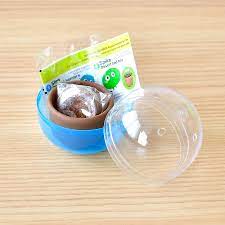 Created six years ago, capsule toys are plastic pods containing a small surprising, clever and collectible object. The pods are dispensed by a machine, which requires inserting coins and turning a knob by hand to release a capsule into the tray.