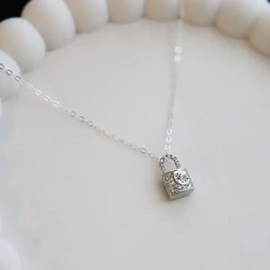Materials: 14kt gold filled chain, gold plate brass and cz lock charm Sterling silver chain, Rhodium plate brass and cz lock charm
