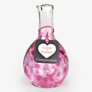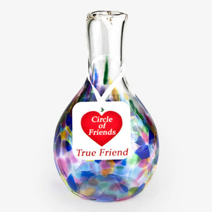 In our circle of best friends, each friend excels at different things. The Henrietta Glass Circle of Friends Vases are designed to celebrate our friends' unique gifts, and to say, "Thank you for being part of my circle." Each vase comes with a hangtag specific to its color and trait, on a color coordinated satin ribbon, and is packed in an individual gift box. Due to the handmade nature of this work, slight variations will occur.