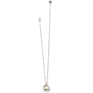 This pendant necklace with softly hammered details and golden accents is modern art-to-wear – breathtaking from every perspective.