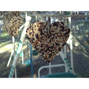 The sold seed hearts contain black-oil sunflower, pecans, sunflower hearts, and just a dash of white millet. They are irresistible to wild birds.