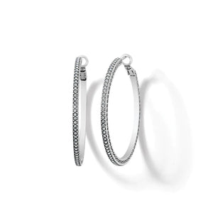 Fine crystal pave details sparkle against these chic statement hoop earrings that transition effortlessly from day to night.