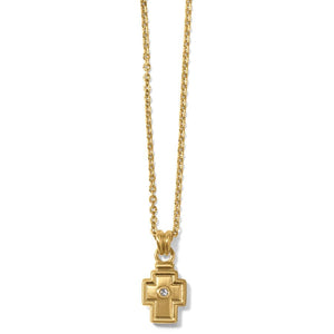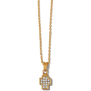 This petite cross pendant necklace with a hand-set pave crystal front reverses to wear as a single stone styling.