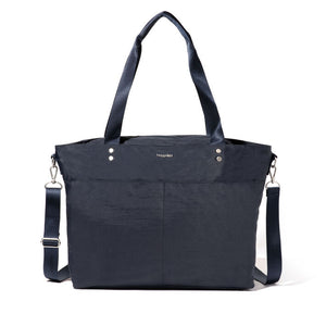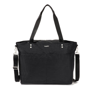 With the ability to be worn as a shoulder bag or crossbody, this spacious tote is a must-have for your work week, upcoming travels, or day trips. Store your computer in the secure 15” laptop sleeve. For smaller items that require fast access, exterior slip pockets and an anti-theft card wristlet have you covered. Stack the Carryall Laptop Tote on your wheeled luggage for a seamless travel experience.