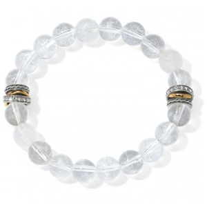 Neptune's Rings gets a new twist with this stretch bracelet adorned with stacked rings. In natural quartz crystal, it symbolizes healing and spirituality.