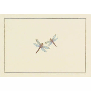 Design depicts a pair of dragonflies in flight.