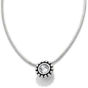 Twinkle, twinkle, littlest star of the Brighton collection of necklaces, this one a tiny but mighty round crystal sparkler in a silver bezel setting.
