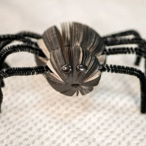 Spider Approx: Baby Spider: 3"L x 2-1/2"W with 8 legs that are each 3" long. Mama Spider: 4"L x 3"W with 8 legs that are 4" long. Spiders are made from cast off literature and are the perfect creepy addition to someones halloween decor. We love that you can move the legs around on these spiders to decorate with them exactly how you want to.