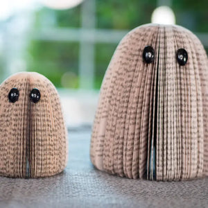 Ghost Approx Dimensions: Baby Ghost: 3-1/4"H x 3-1/4"W Mama Ghost: 5"H x 4"W These eco-friendly ghosts are made out of used books and are a unique way to decorate for Fall and Halloween. Spooky Decor that your customers can use to decorate their table, fireplace mantle, or anywhere they want that added touch of spooky. We love these as Halloween Party favors. They also make great gifts for the book lovers!