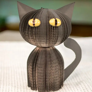 Black Cat: 6"H x 3"W Approximate These spooky black cats are made out of used books and are a bestseller for halloween decor and fall decor. Perfect for all the cat lovers out there!