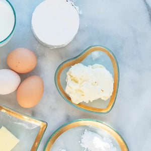 Understated clear glass made luxury with a wide, hand-painted band of 24k gold or genuine platinum.