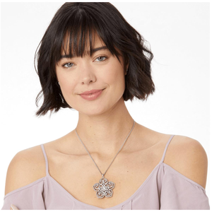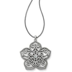 Outlined in sparkling Swarovski, this delicate filigreed bloom echoes the motif of our original Illumina designs, inspired by the view one sees when gazing through a kaleidoscope. Reverses to a more subtle granular silver look.