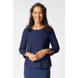 Beautifully textured comfy cotton/spandex blend elevates our customer favorite button back pullover.