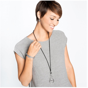 This Celtic-inspired bangle encircles the wrist in a comfortable oval, with a strong magnetic closure. Easy to put on and take off, and its sleek style is everyday wearable.