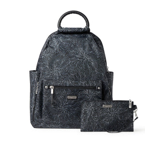 Everyday elegance just got easier. Go hands-free while traveling with the lightweight all-day backpack's convenient adjustable straps. The removable RFID-blocking wristlet protects your personal information, so you can focus on the journey ahead.