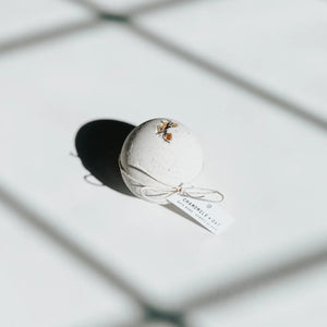 Chamomile + Oat Bath Bomb: Indulge in a soothing ritual with the Chamomile + Oat Bath Bomb, a natural bath bomb designed to calm the senses and soften the skin. Handcrafted in small batches with colloidal oat and chamomile extract, it fills warm water with gentle hydration and a subtle, floral-herbal aroma. Hints of citrus, lavender, and cedarwood add quiet depth, creating a relaxing soak that restores balance and ease.