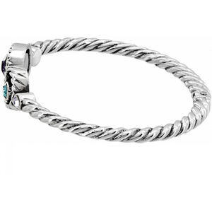 Lavender, blue and aqua Swarovski crystals twinkle like stars shown through a telescope, each framed along the rope-edge of this hinged bangle. Its breathtaking design features a hidden magnet close.