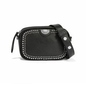 This super-stylish fine leather mini bag packs a fashion punch with iconic hardware, decorative studs and a great contoured silhouette. The back pocket fits your phone.