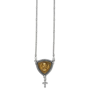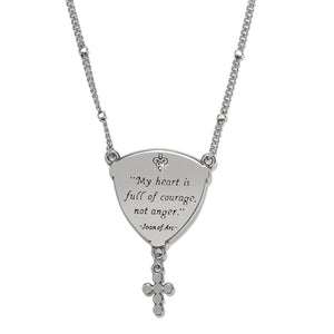 Celebrate inner strength and strong women of faith like Joan of Arc, who is depicted on this medallion in honor of her courage. The reverse side of the pendant includes a meaningful message that reads, my heart is full of courage not anger.