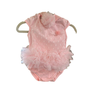 Adorable pink stretch onsie with bottom snaps, tulle ruffle, head band