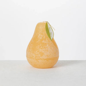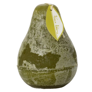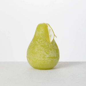 Iconic Vance Kitira large pear candle measures 3" x 4" and burns clean for 40 hours.