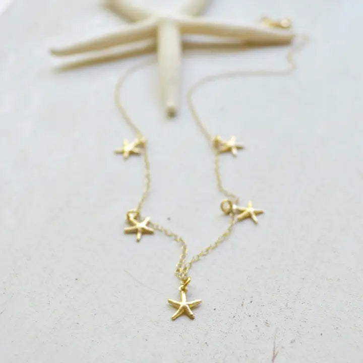 from $47.00Tiny Gold Frosted Glass & Starfish Necklace - Seafoam