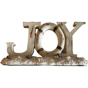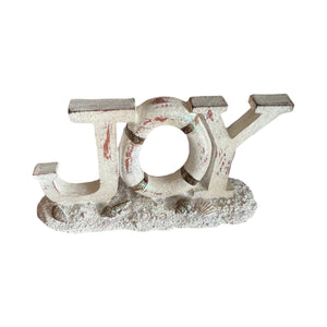 Resin sign Joy embellished with sand themed resin, glitter and sea shells.
