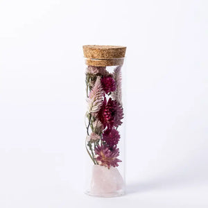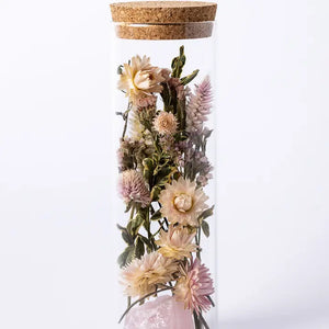 Our Earth Vessels are statement pieces — one-of-a-kind bouquets of dried flowers and crystals nestled in glass, made to celebrate life’s most meaningful moments. Perfect for weddings, house blessings, anniversaries, or any sacred milestone, they’re a lasting symbol of beauty and intention. Pair one with a floral card to create a heartfelt story told in flowers — a gift that speaks without saying a word. The colors and flowers will be best when kept out of direct sunlight, away from moisture, and out of direct heat.