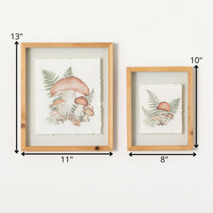 Elevate any wall with these Glass Mushroom Wall Decor pieces. Printed on handmade paper and encased in a natural floating frame, this set of two mushroom designs brings a touch of whimsical style to any space. Hang these versatile wall hangings in your living room, bedroom, or office to instantly refresh your decor with a playful, one-of-a-kind touch.