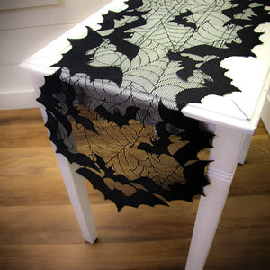 Design theme? Bats. More bats, and still more bats! Fabric surrounding the bats has been cut away for a ghastly dimensional effect.