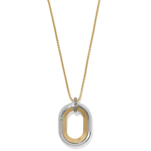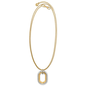 This bold statement necklace features a rectangular link pendant that is Venetian Renaissance-inspired. The labor-intensive hand-painted and hand-hammered techniques give it an elevated look and the two-tone silver and gold makes it ultra-versatile. It can also be worn long or short.