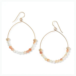 Semi-precious beads in the warm colors of an island sunset make these hoops the perfect face-flattering accent. Because we have used natural materials, each stone is truly one of a kind and may have variations in color.